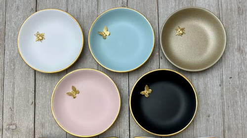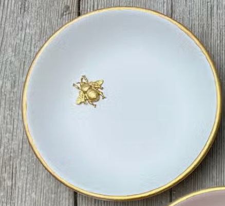 White accent dish with gold bee