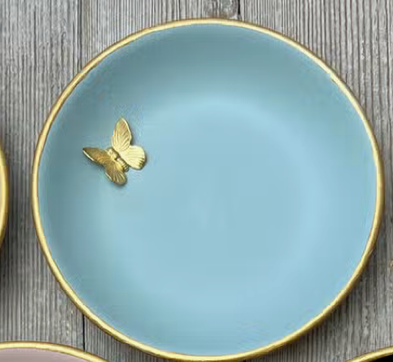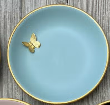 Aqua accent dish with gold butterfly