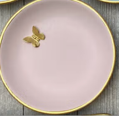 Pink accent dish with gold bee