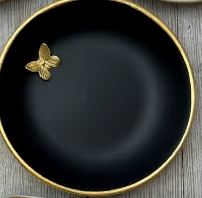 Black accent dish with gold butterfly