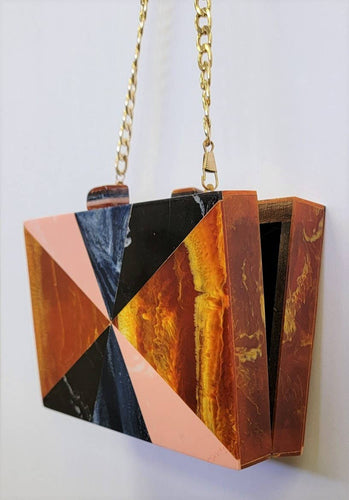 BOX BAG WOOD ACRYLIC INLAY CLUTCH -Geo Neutral
