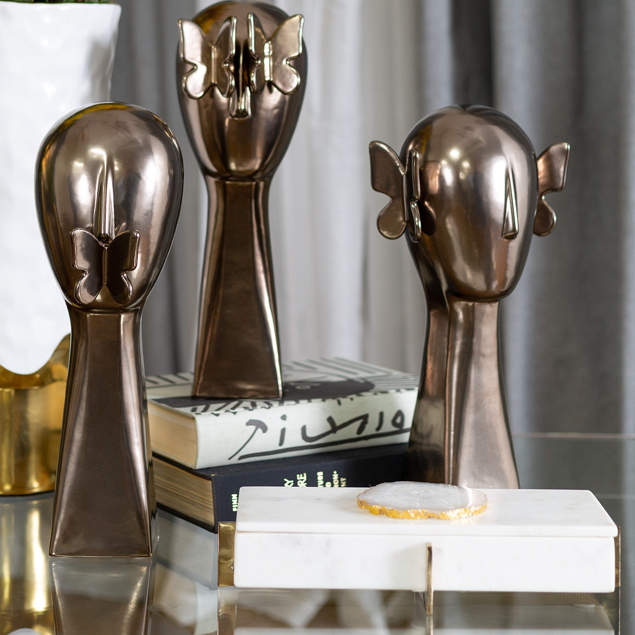 - Features an elegant design, it boasts a white marble body and a gold-finished base.